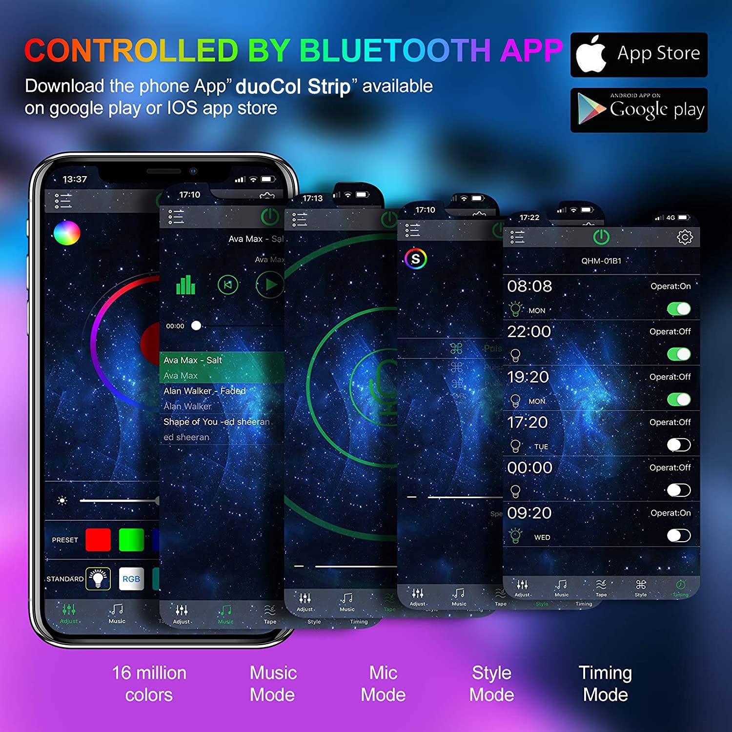 - Smart Timing Settings: With timer function, this led light strips allow you to pre-set time to turn on/off led lights and change color at certain times, just enjoy it in a smart way
