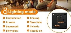 - 8 Impressive Lighting Modes: modes available help make your garden more attractive with different warm and sweet atmospheres. The Christmas Decoration Lights make your place in a starry warm amber glow, much more romantic. Choose your favorite modes based on different occasions.