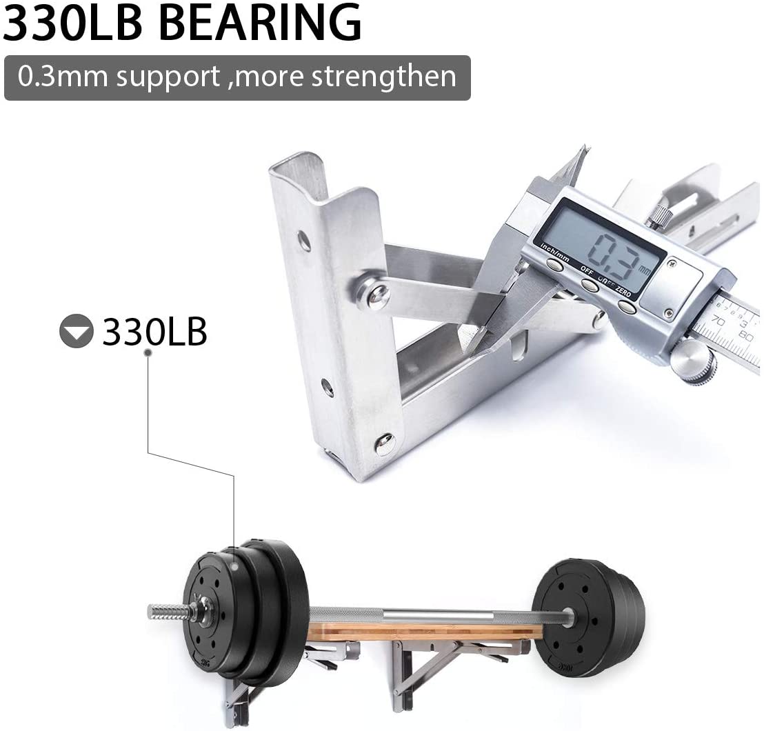 Folding shelf brackets not only have a pair of 14inch shelf brackets folding as well as a pair of L shelf bracket 2pcs more affordable and more flexible. L shape shelf brackets size :35 x 17 cm(LxW) mount hole dia: 5mm, thickness: 3mm.Maximum support weight of 330lb.