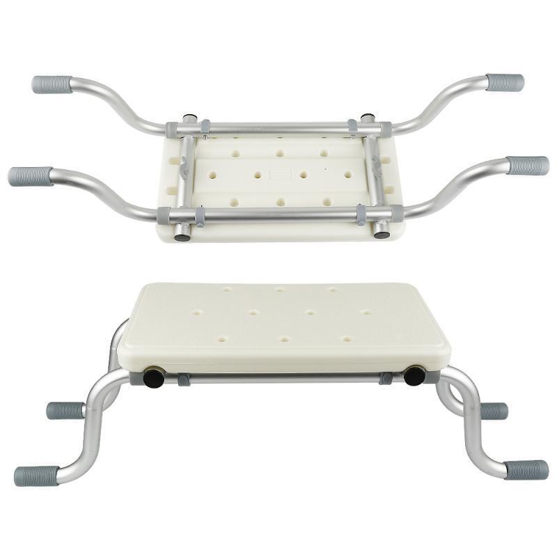 - Enhanced Safety Features: Equipped with a non-slip handle and drainage holes on the PE plastic stool surface, our Adjustable Aluminium Bath Bench ensures a secure and stable seating experience, reducing the risk of slipping and accidents in wet bathroom environments.