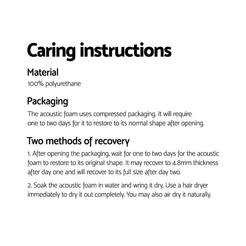 Note:The acoustic foam comes in compressed packaging and will need one to two days to restore to its normal shape and size.
