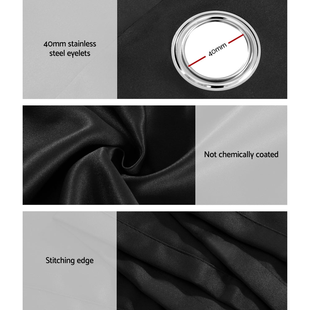 Artiss 2X 132x274cm Blockout Sheer Curtains Black