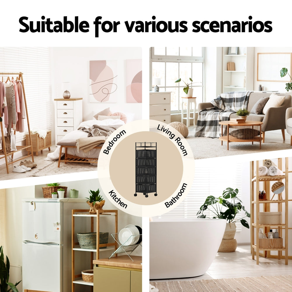 Artiss Storage Trolley Kitchen Cart 5 Tiers Storage Rack Black