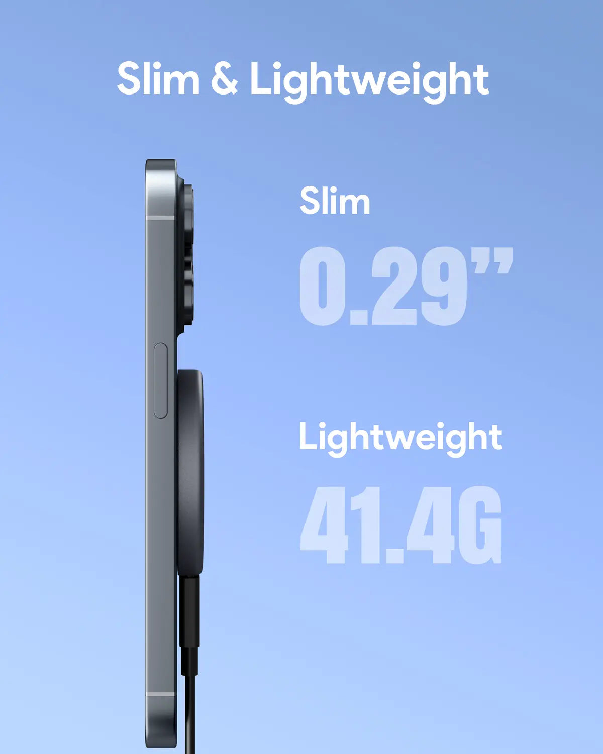 - 15W Fast Charging: Provides fast and efficient wireless charging.