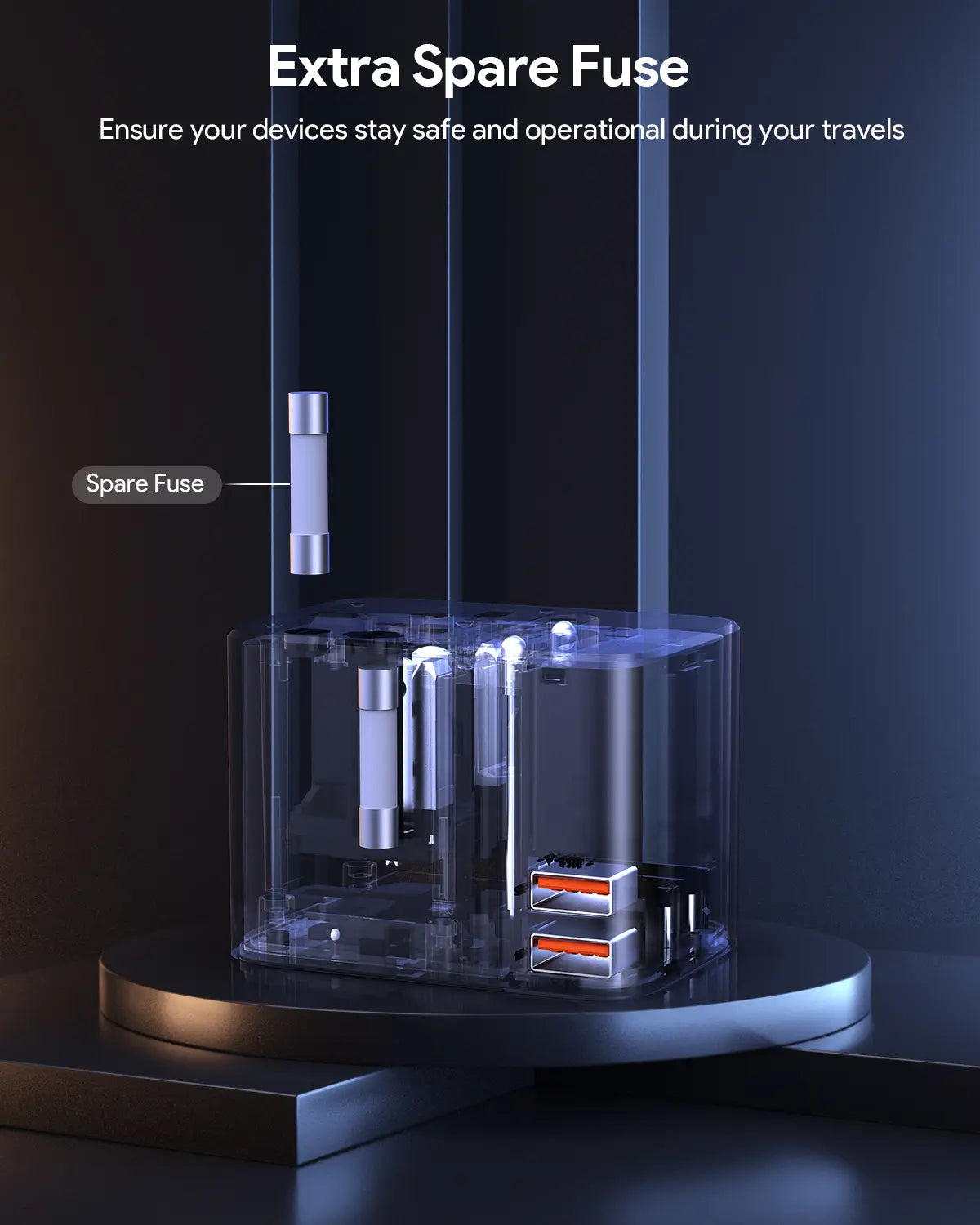 The Aukey Travel Mate Universal Adapter with 3 USB-C Ports 35W (PA-TA07A) is designed for travelers who need reliable charging while on the go. Compatible with outlets in over 150 countries, it includes USB-A and USB-C ports, allowing you to charge smartphones, tablets, and other devices simultaneously. With 35W output, this compact adapter provides efficient charging for a variety of electronics without taking up much space in your luggage. Built-in safety features protect against overcharging, overheating, and short circuits, making it a reliable choice for international travel.
