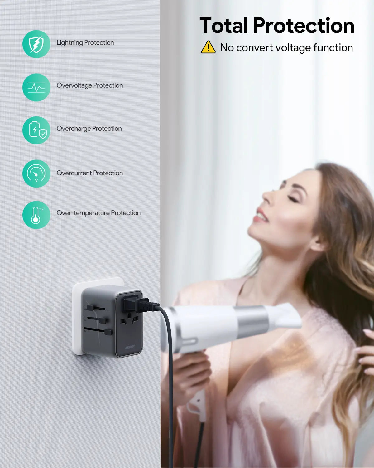 Aukey Travel Mate 65W GaN Universal Adapter with USB ports (PA-TA08A)