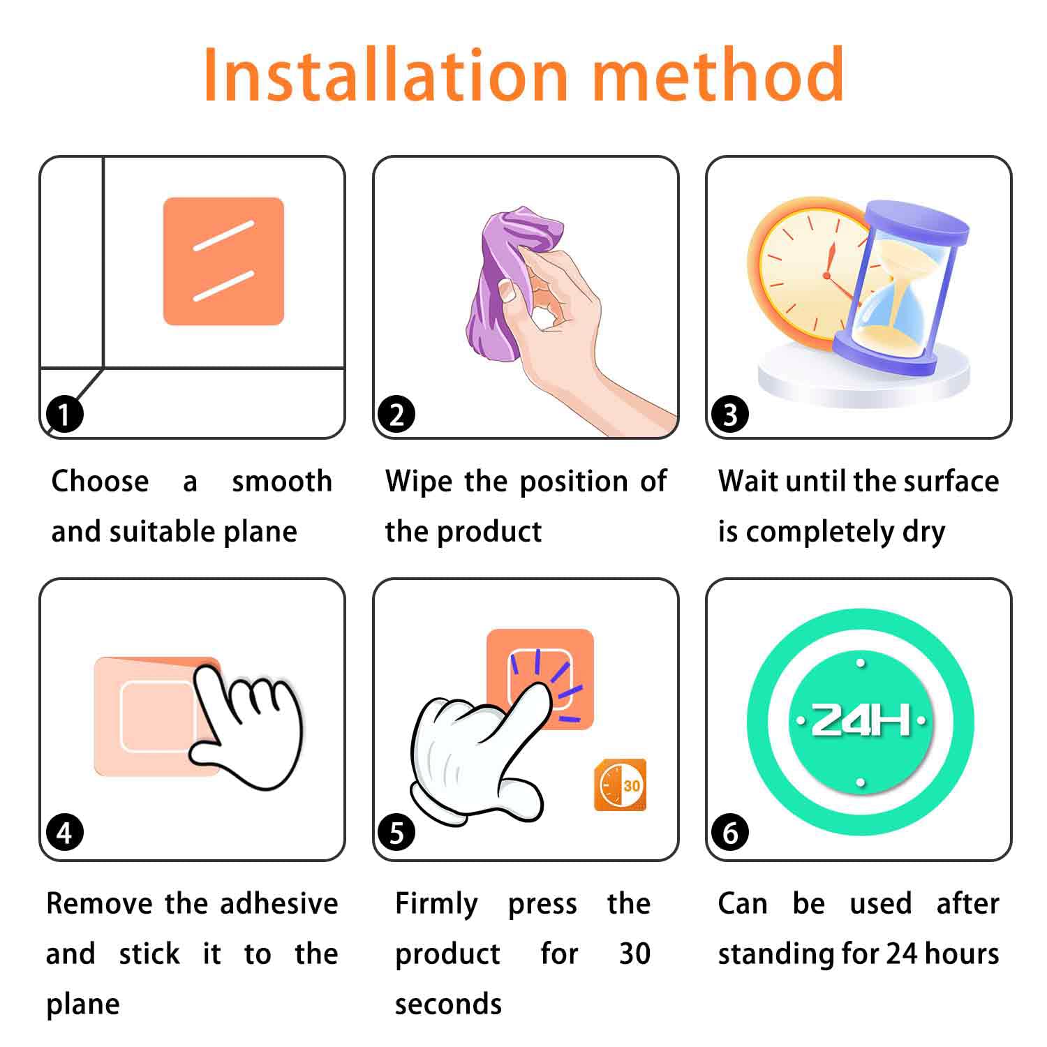 No need to drill and no need to damage the wall, stick wherever you need. Smooth & mute in swinging with 180 swivel design. Notes: When installation, please make sure the wall is smooth, clean and dry.