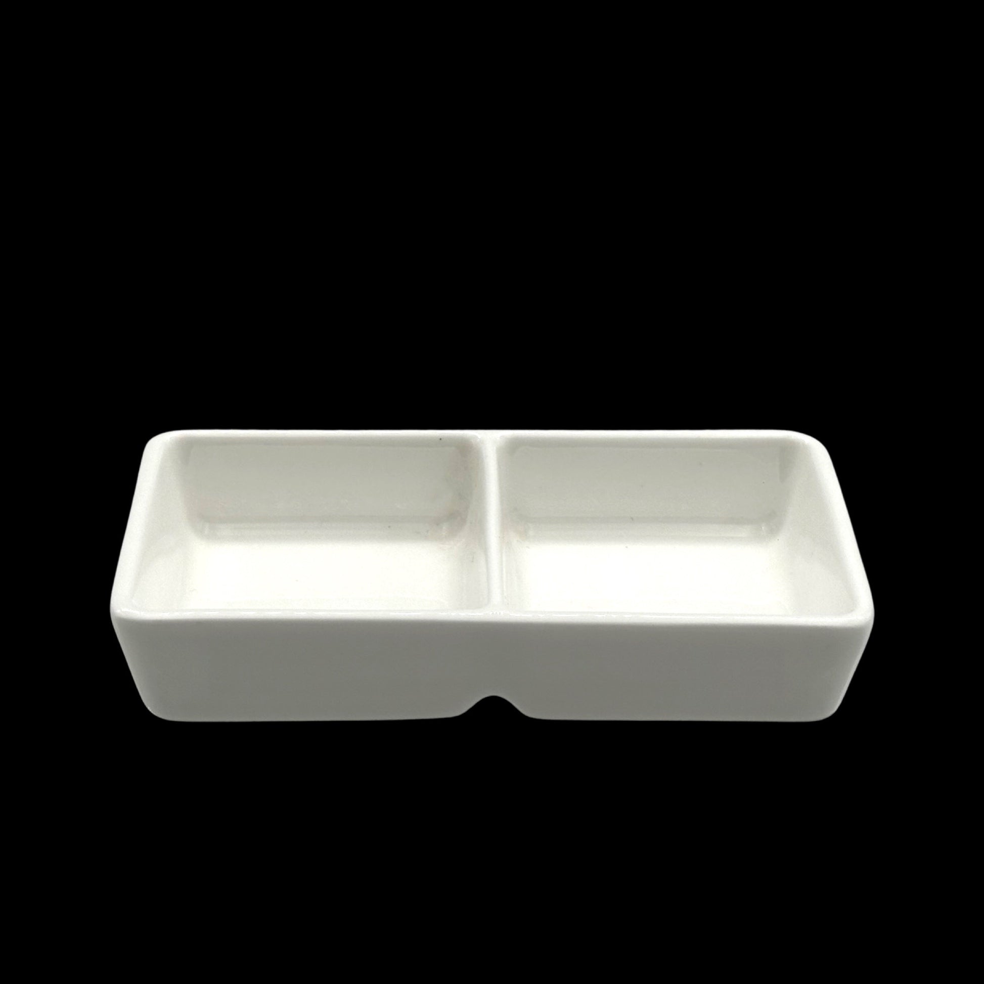 bulk 36 White Bone China 2 Section Square Dish 11x6cm
