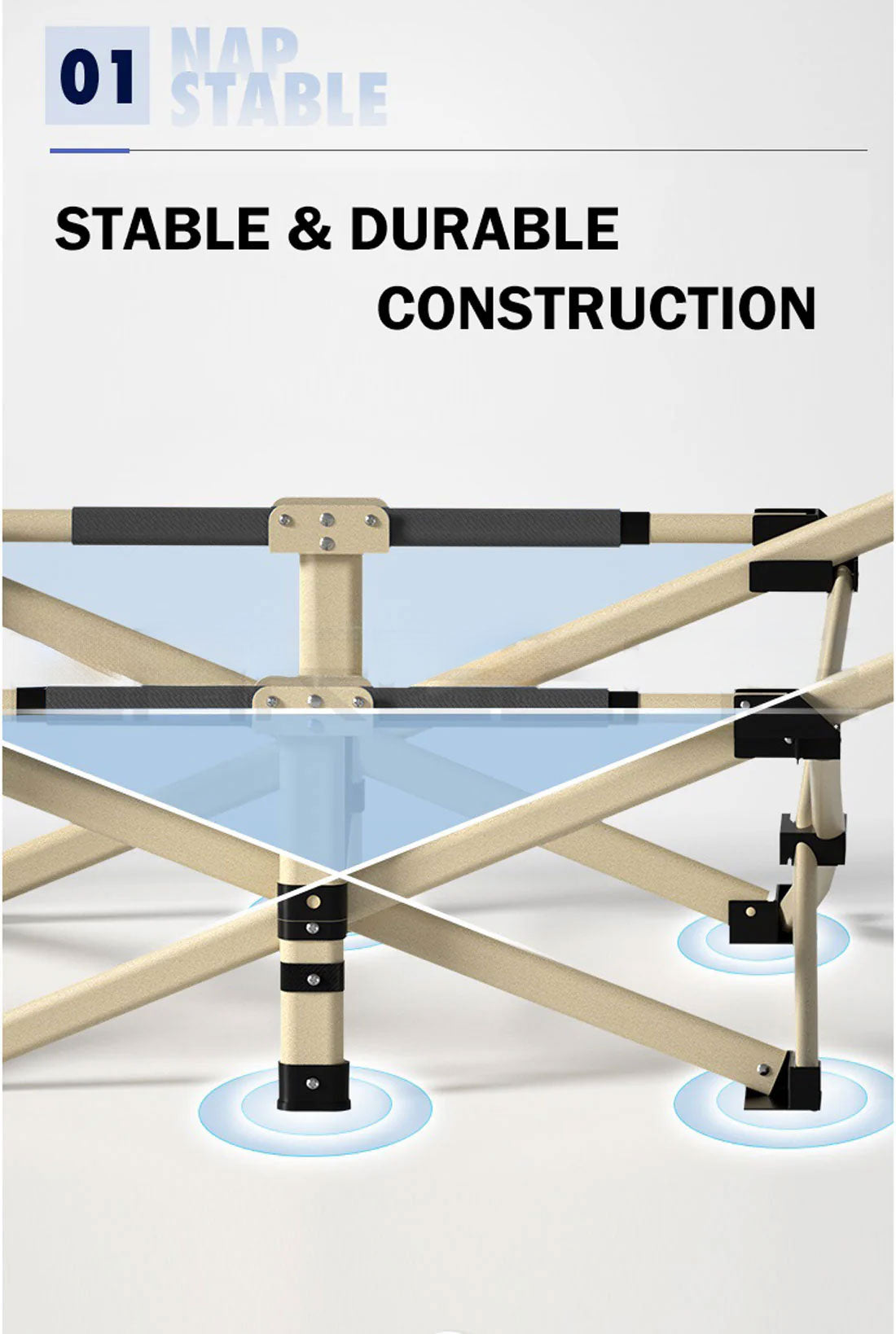The structure of a Portable Folding Bed was designed with multiple support structures making it very durable and strong. The steel tube bed frame adopts a multi-triangular structure with unique design and the linkage support structure provides super load-bearing. The link axis of screws are not easy to deform and has reinforced steel construction that could support weight up to 160kg. The portable folding design is also very convenient to save storage space ideal for your camping adventures or beach travels. It can also transform any rooms into a stable and comfortable bedroom ideal for guests and visitors who like to spend a night at your home.