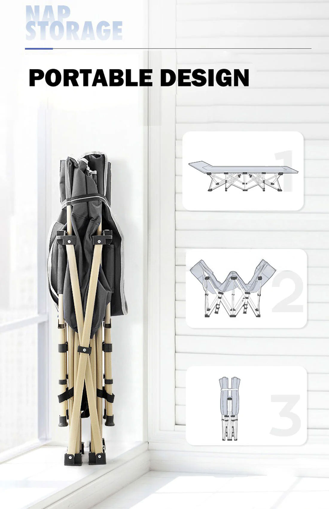 The Portable Folding Bed was made with breathable durable fabric with double sewing which not only increases strength but also retains moderate flexibility. It was designed with 18 degrees warped head decompression that can perfectly fit the body curve so you can sleep peacefully even without a pillow. Save space and convenient to carry. You can open it with easy operation in just one second. This folding bed is ideal for outdoor, beach, travel, sports, picnic, camping, or any place wherever you want to go and relax.