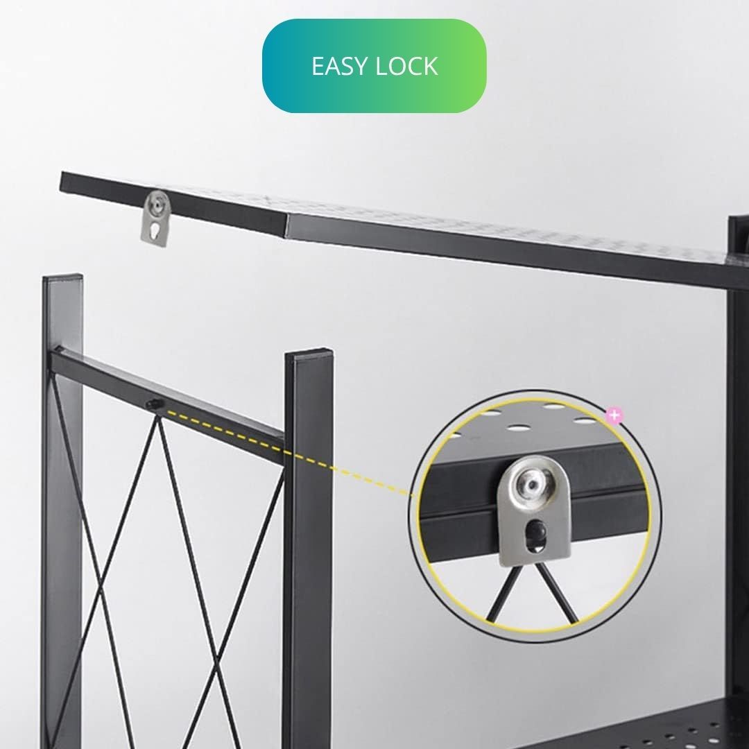 CARLA HOME 3-Tier Foldable Storage Shelf with Wheels for Kitchen, Garage, Pantry or Basement (Black)