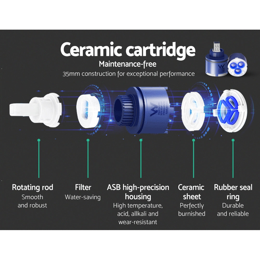 For a perfect mix of the right water temperature, our Shower Taps are simply convenient to use. The solid brass construction make this ensemble absolutely smooth and durable with a drip-free 35mm ceramic cartridge to prevent leakages. The brilliant chrome finish actually comprises a multi-layer finishing process with zinc, nickel and brass plating. The taps are marked as hot and cold markings for hassle-free use. Not least, the shower taps carry a WaterMark certification and comply with Australian standard AS/NZS 3718 for total peace of mind installation and use.