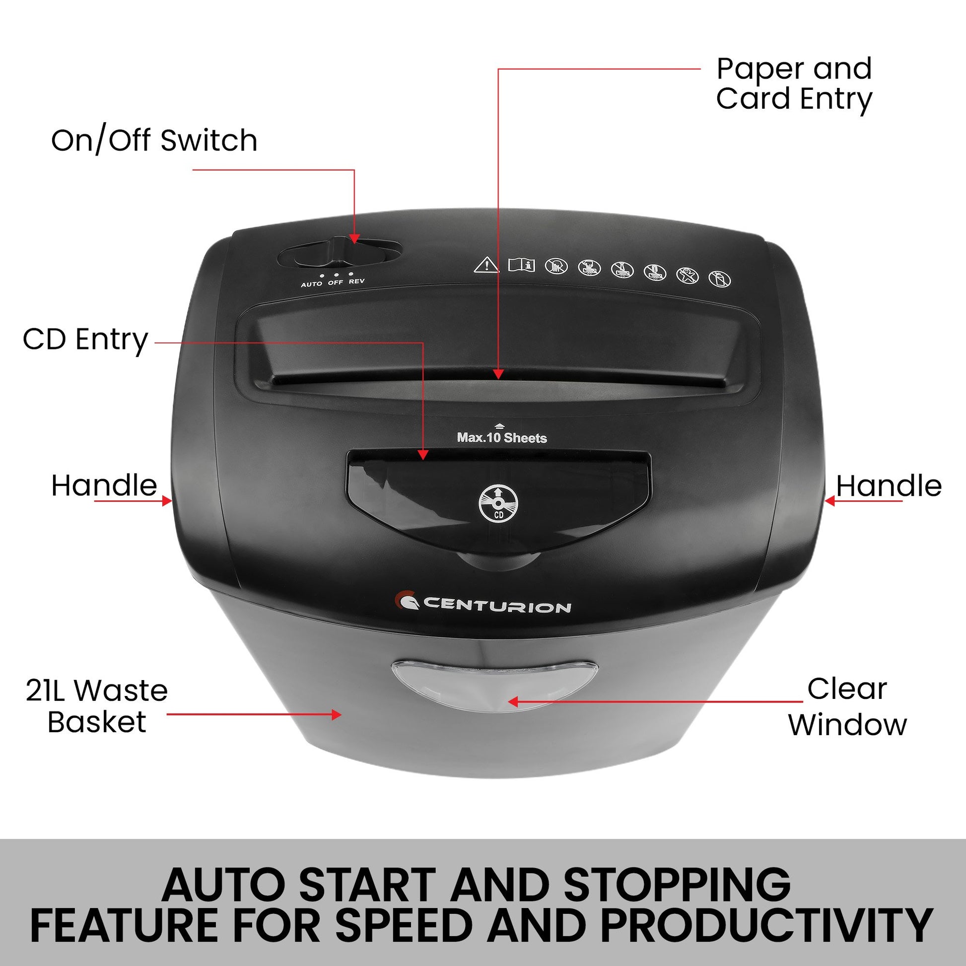 Centurion 21L Cross-Cut Office Shredder 10-Sheet Paper, CD & Credit Card Security