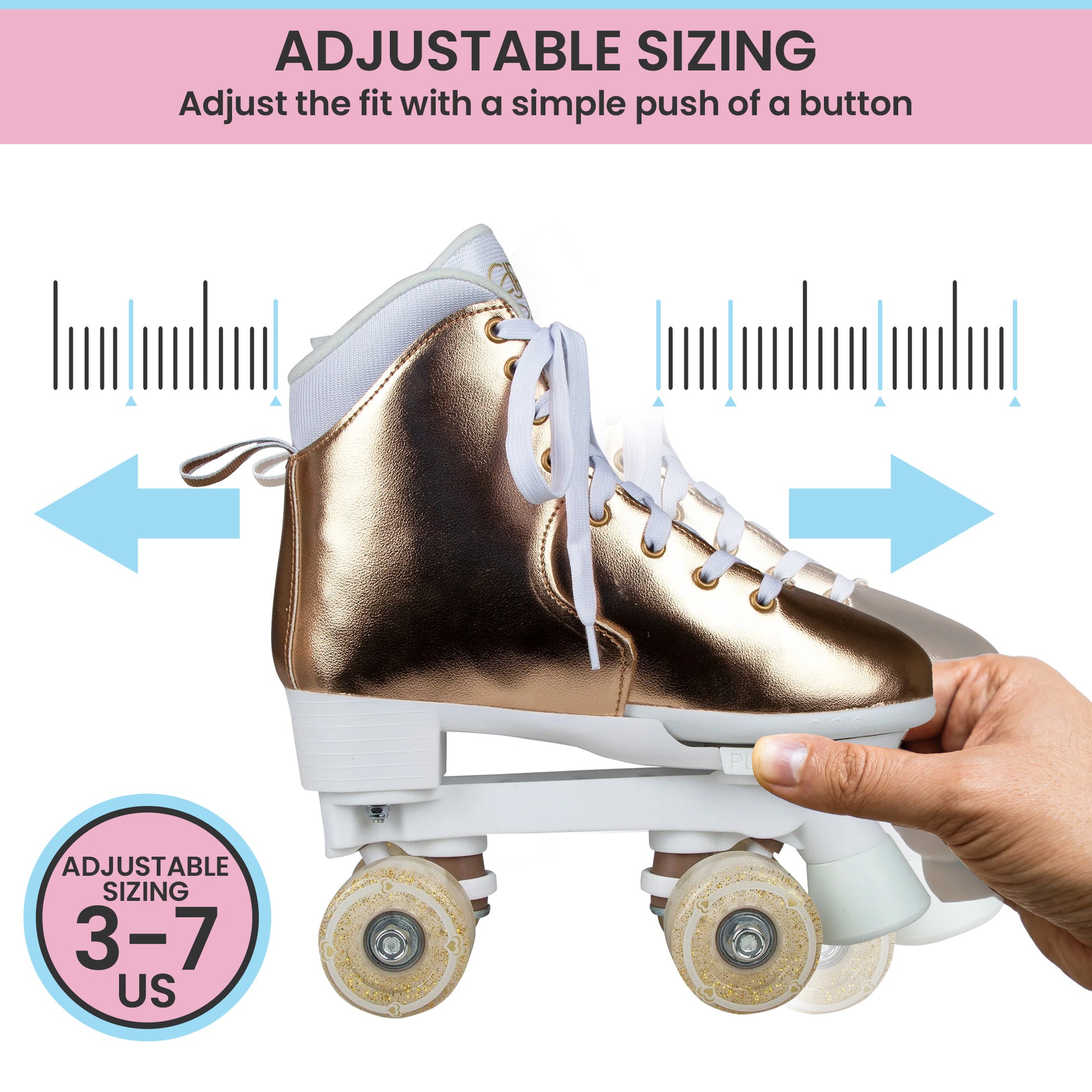 Circle Society Adjustable Quad Kids Roller Skates In Metallic Rose Gold