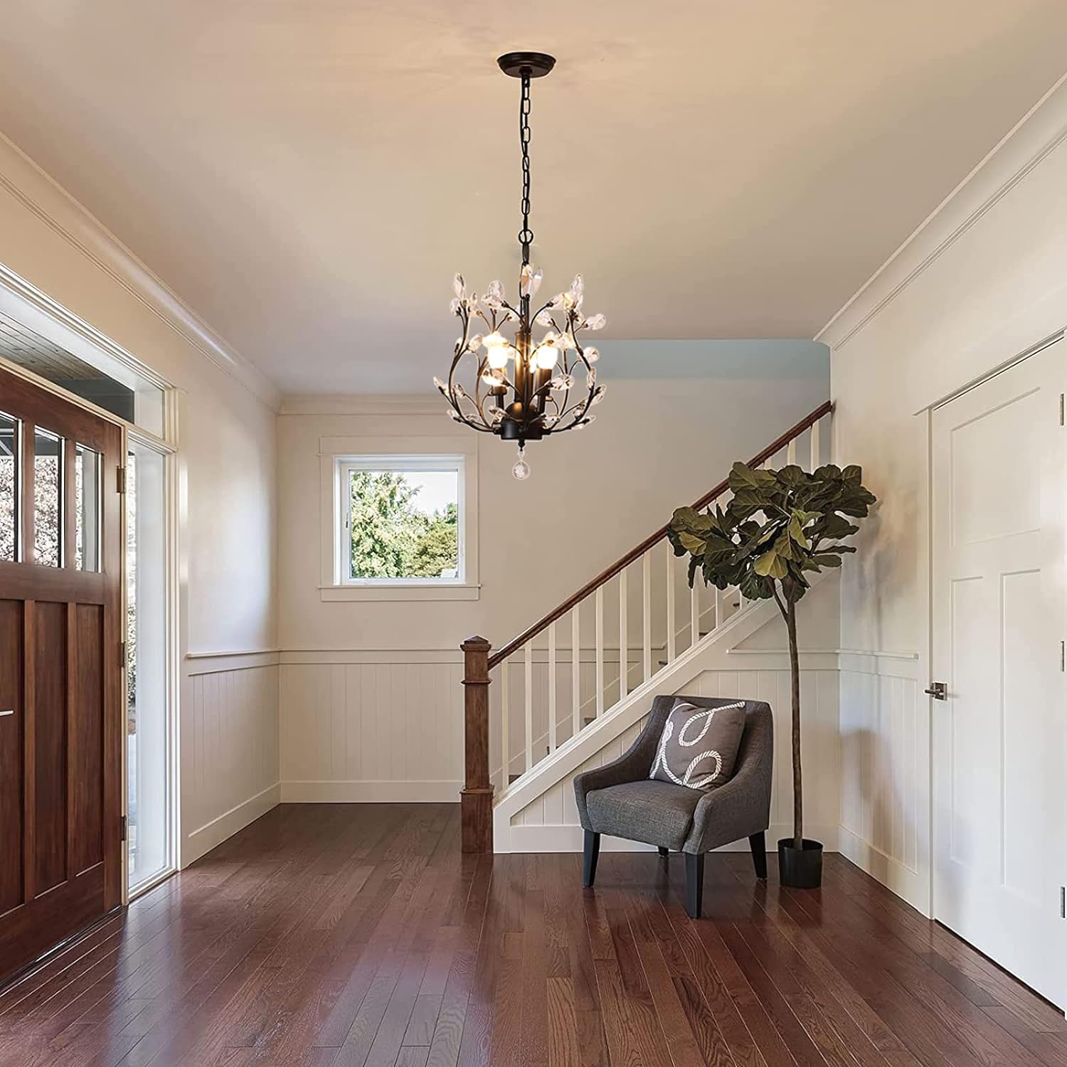 - ELEGANT STYLE: Add a touch of sophistication to any room with this stunning black crystal chandelier. Featuring five branches with crystal accents, this fixture exudes elegance and luxury. The transparent glass crystals capture and reflect the light of the bulb, creating a warm and soft atmosphere. Choose from two colors - black or gold - to match any d�cor.