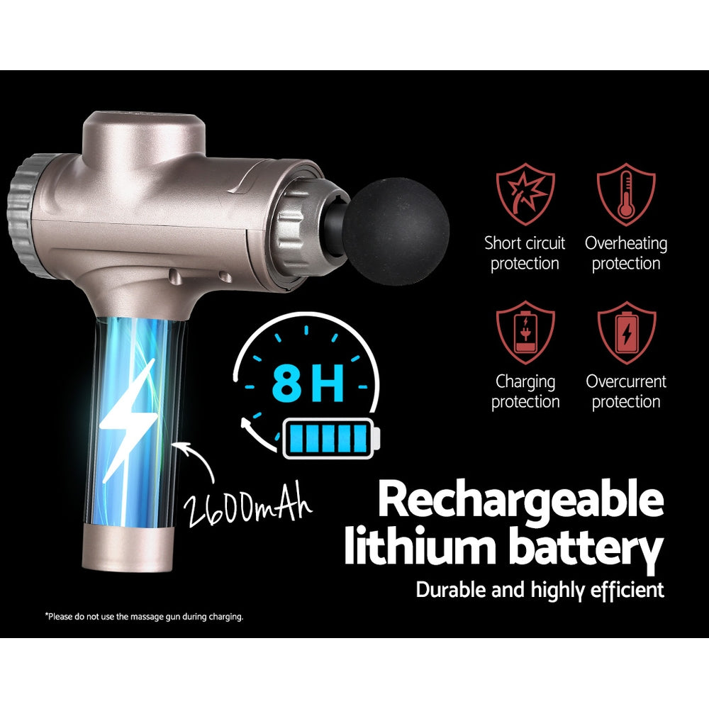 Everfit Massage Gun 30 Speed 6 Heads Vibration Muscle Massager Chargeable Gold