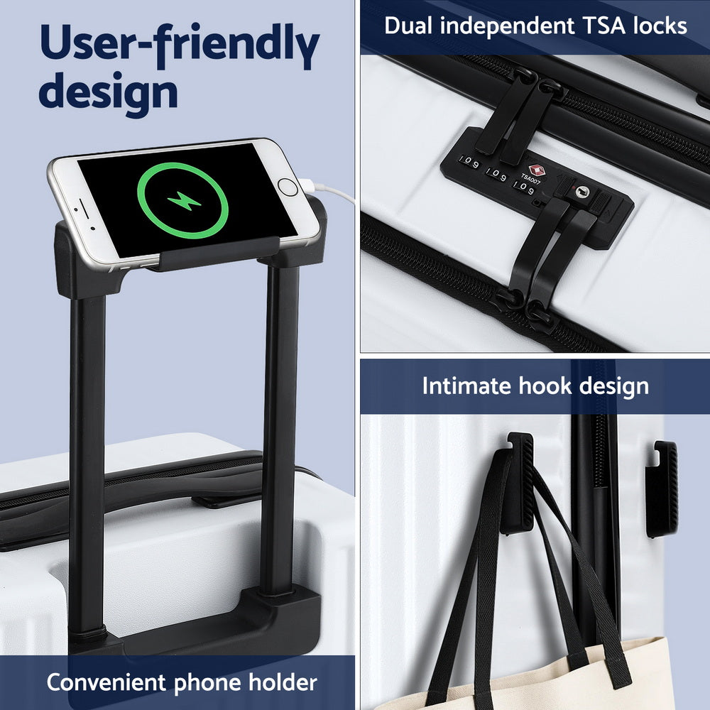Wanderlite 20" Luggage Suitcase Front Pocket Travel Carry On Dual TSA White